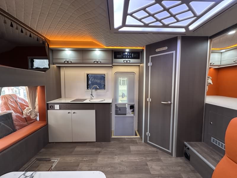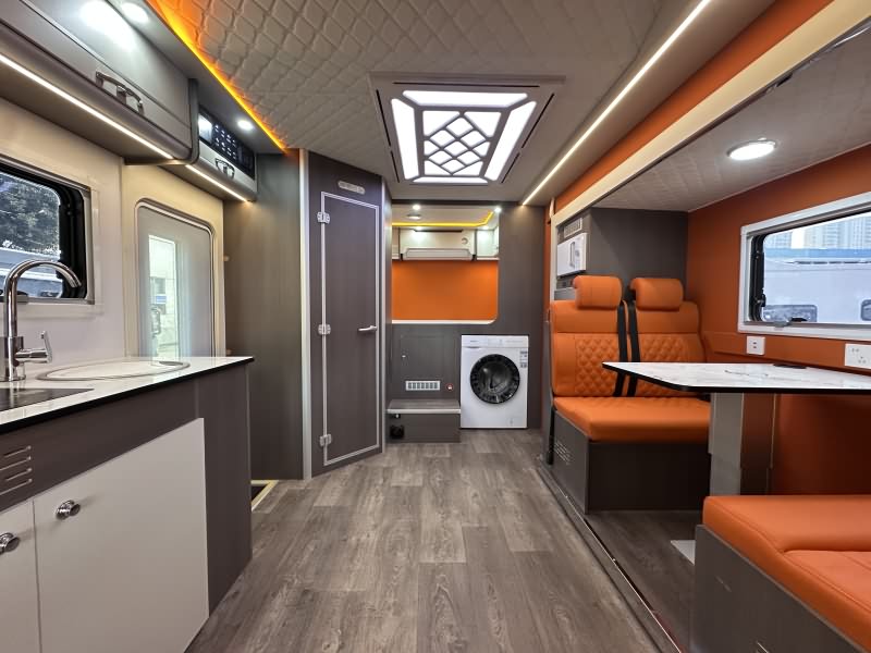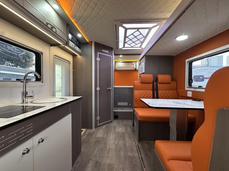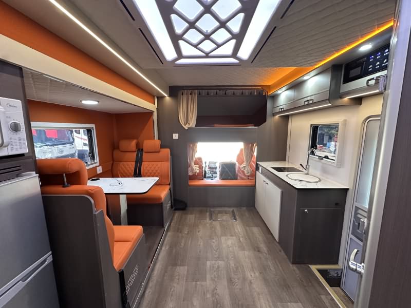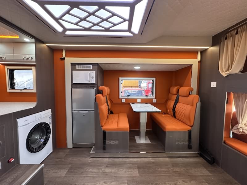 内饰材质:采用EO级环保板材(无异味),搭配专用耐磨防水地板革,箱体与顶部软包设计,温馨舒适。